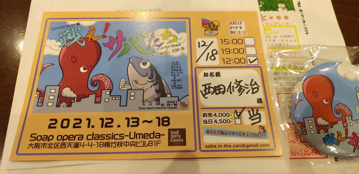 本日よりSoc-Umeda-にて全9公演+18日はアフターイベントです。 ホンマに面白いです♫是非! サバ缶コントライブVol.2 『戦え!サバたち』 2021年12月 13(月)19:00 14(火)15:00/19:00 1… https://t.co/shknKWMrjO