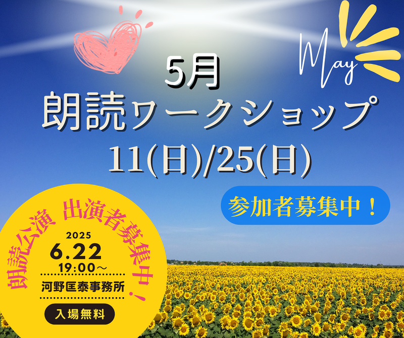 朗読公演は6月22日(日)を予定しています。(参加者募集中!※出演参加費無料)