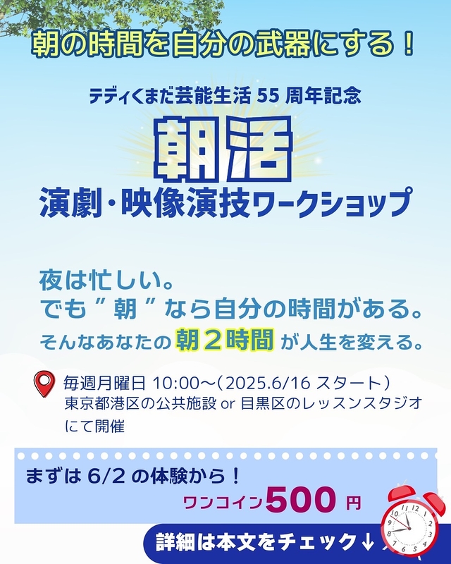 舞台を目指す方にも、映像の仕事に関心がある方にも、実践的な学びが得られる内容です。