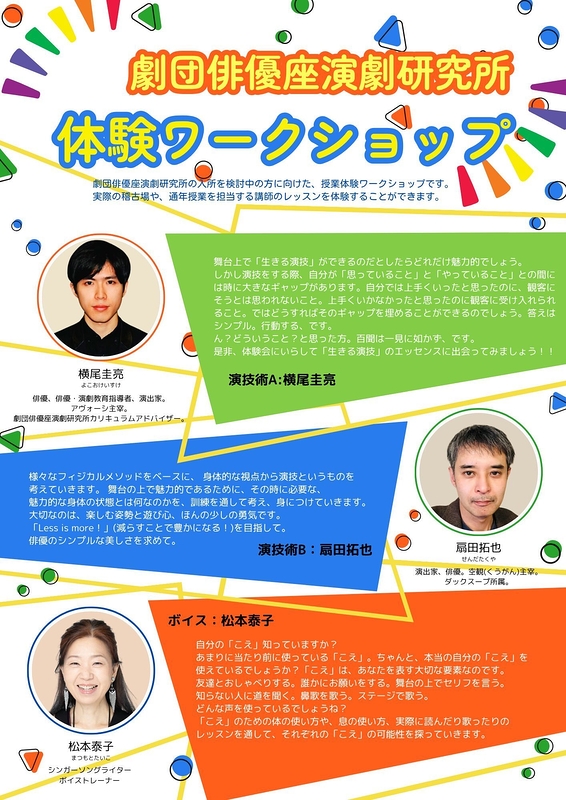 ・劇団俳優座演劇研究所については、研究所webのパンフレット(2026年度・春版)をご確認ください。