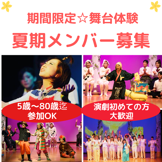 普段の日常では出会う事のない職業、年齢、地域の仲間と一緒に、期間限定で舞台に出演してみませんか?