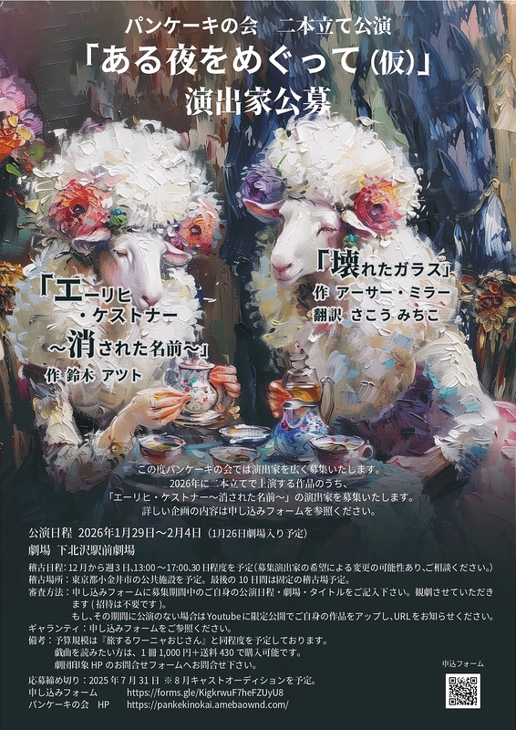この度、パンケーキの会では2026年1月の公演に向けて演出家を募集いたします!