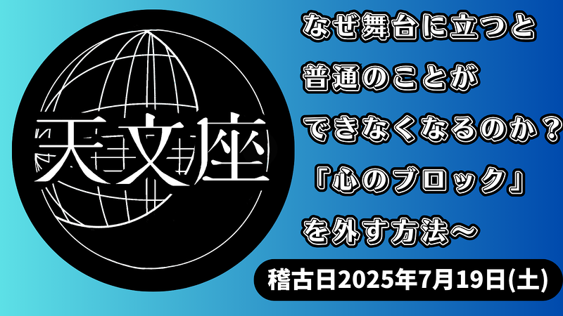 これは革命的な発想だった。**「日常生活で当たり前にできていることがなぜ舞台の上でできないのか」**という問いに対し、その心身のブロック(リミッター)を取り除くことで舞台上でも日常と同様に表現できるようにする。天文座の考え方にも近く、講師は「自分に許可を出す」ことを目指していると語った。