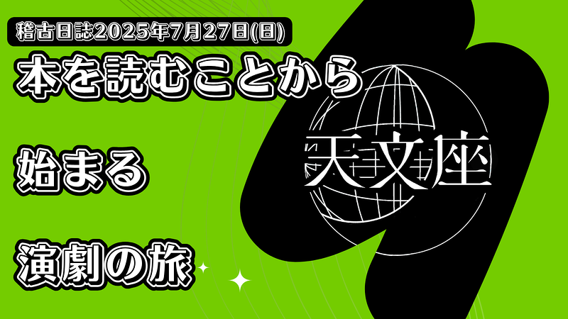 「え、読書?」と驚く方もいるかもしれません。でも天文座では、本を読むことを演劇の基礎として大切にしているんです。これが実は、とても理にかなった素敵なアプローチなんですよ。