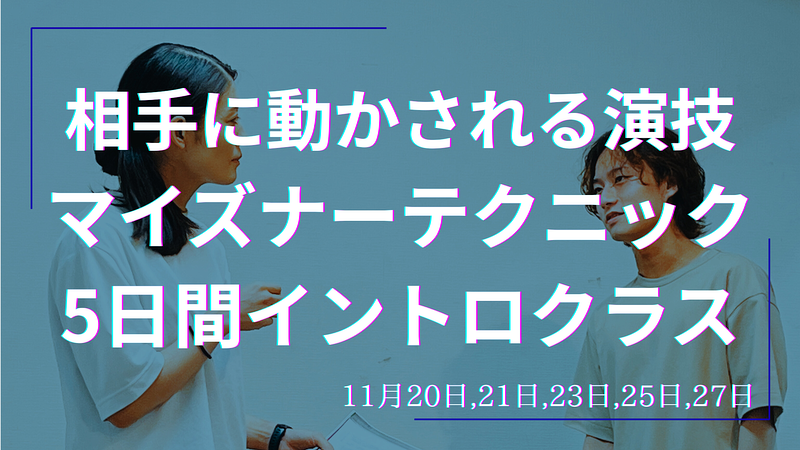 ロンドンのThe Impulse Companyのプログラムをベースにした、マイズナーテクニックにおいて不可欠な要素をおさえた内容です。
