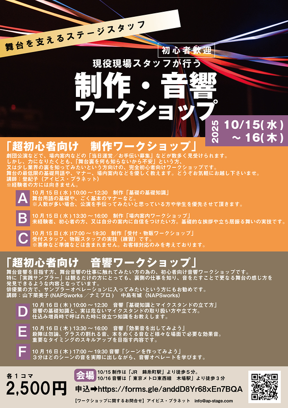 申し込み先:アイビス・プラネット info@ap-stage.com