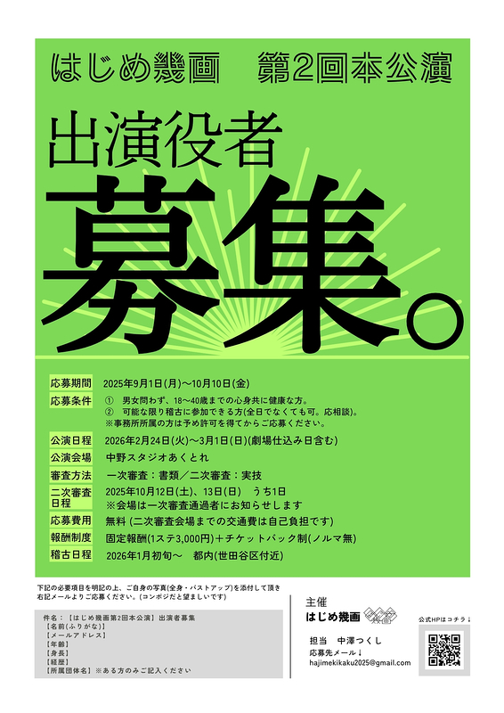 件名:【はじめ幾画第2回本公演】出演者募集