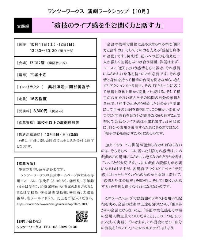 申し込みフォーム:https://www.onetwo-works.jp/workshop/2025/10/1/