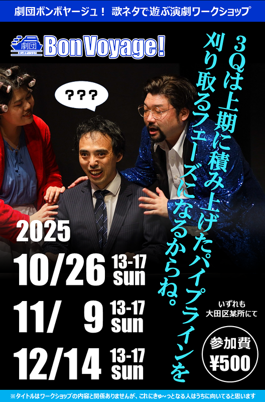 そんな劇団ボンボヤージュ!の作品づくりに少し触れることができる場としてワークショップの参加者を募集いたします。