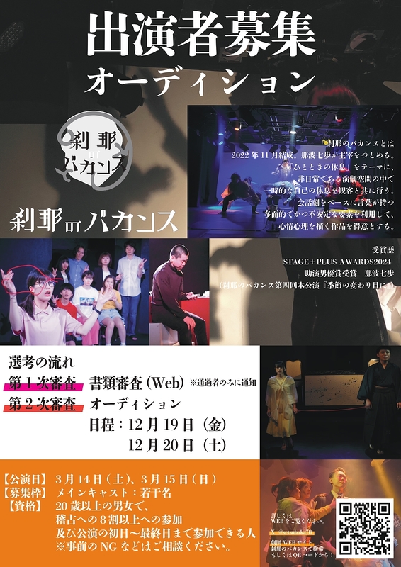 緻密に創り上げる会話劇にご興味のある方や、新しい挑戦をしたい方、ぜひ奮ってご応募ください。