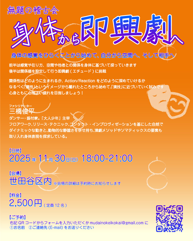 表現者の継続的なトレーニングの場を運営している、無題の稽古会と申します。