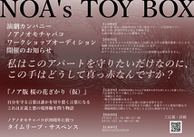 詳細についてや選考結果などはすべてメールにてのお知らせとなります。お知らせいただくメールアドレスは、noatoybox@ymail.ne.jpからのメールが受信可能な状態に設定してください。