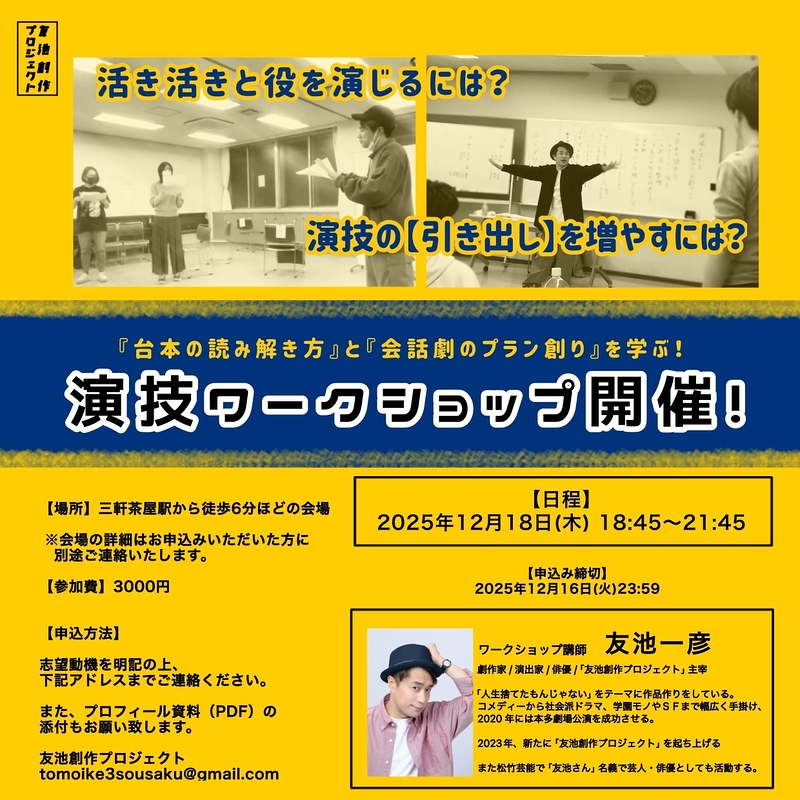 (劇作家 / 演出家 / 俳優 /「友池創作プロジェクト」主宰)