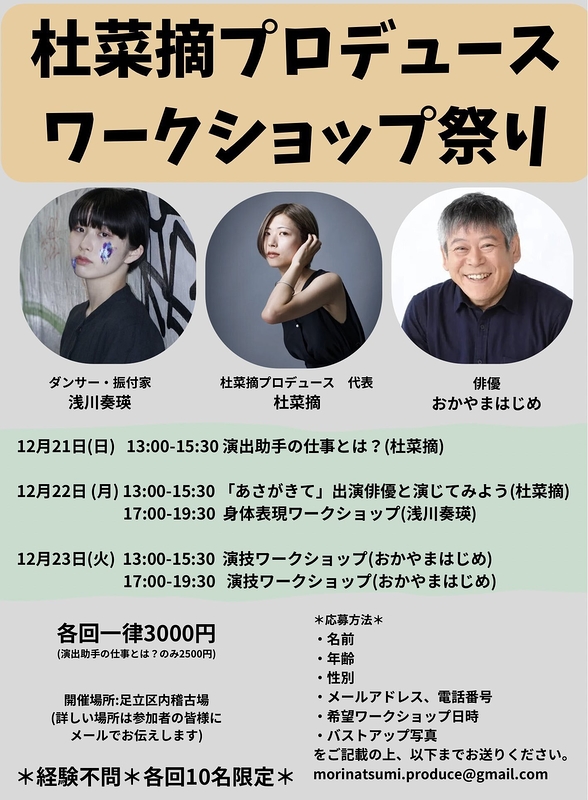 開催場所:足立区内稽古場(詳しい場所は参加者の皆様にメールでお伝えします)