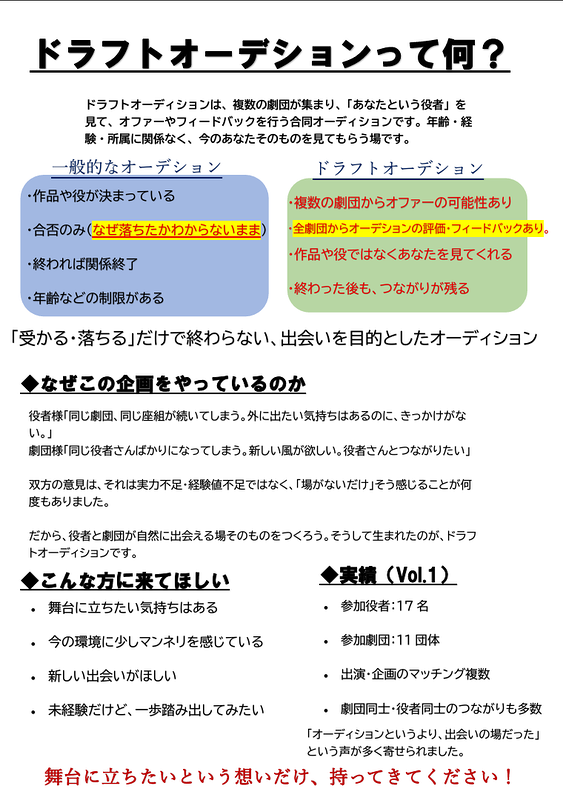 オーディションで10劇団以上が一度に集まる機会は、ほとんどありません。
