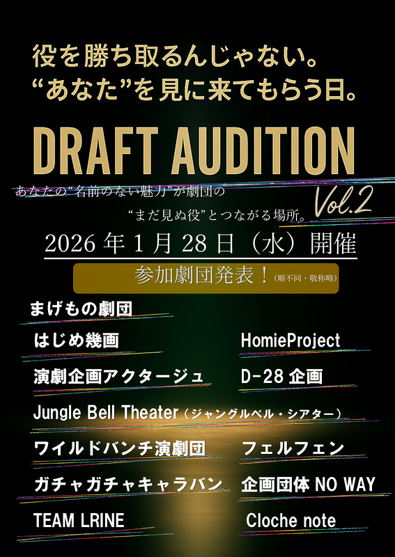 あなたの芝居・存在・空気感を直接見ていく合同オーディションです。