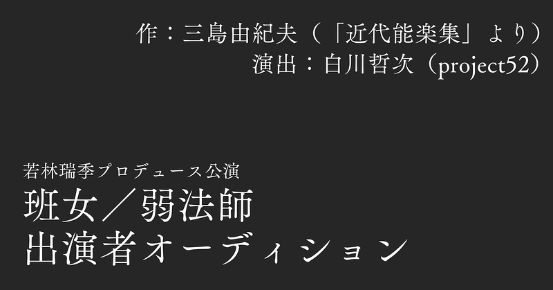 このたび、2026年6月に俳優の若林瑞季がプロデュース・出演する演劇公演「班女/弱法師」の出演者を募集いたします。
