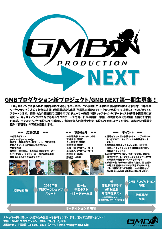 GMBプロダクション新プロジェクト/GMB NEXT第一期生募集!