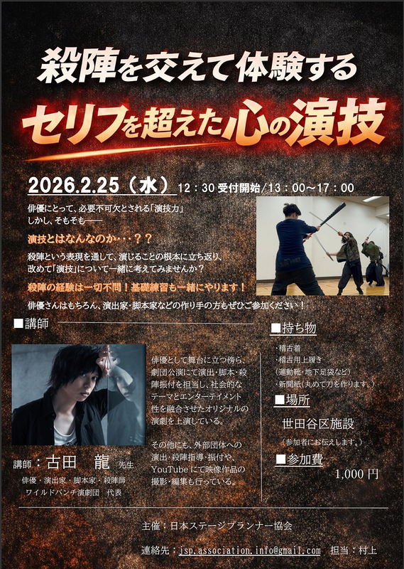 俳優・演出家・脚本家・殺陣師として活動する 古田龍 先生 を講師に迎え、