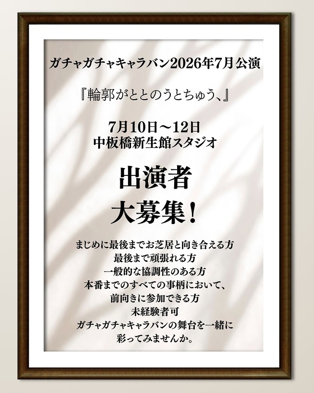 2026年7月10日~12日にかけておこなう作品の出演者を募集しております。