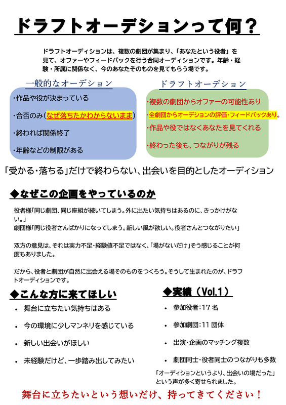 ドラフトオーディションです。