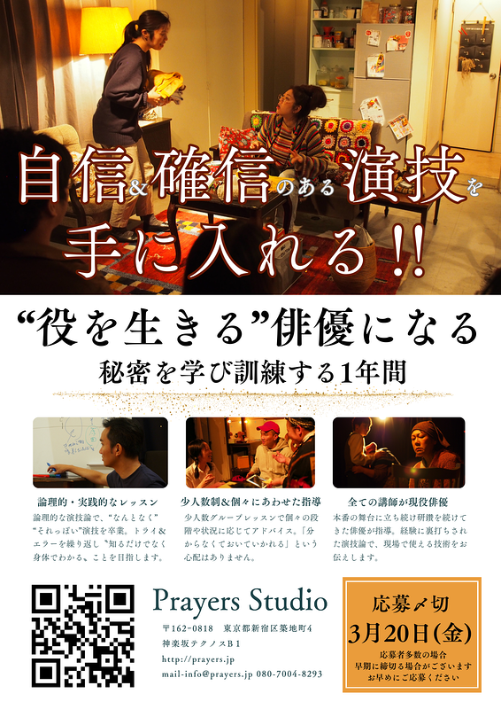一年間の俳優トレーニングクラスを開講しています。