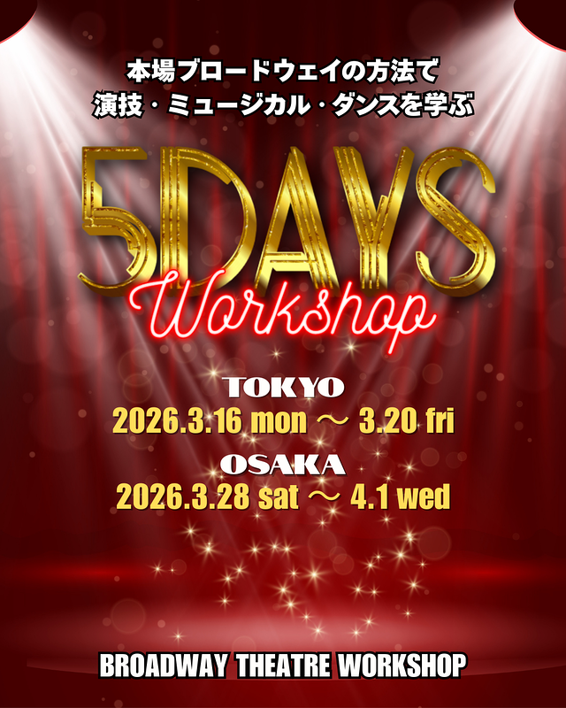 演劇・ミュージカルの聖地ブロードウェイの方法で学ぶ5日間‼️(東京/大阪)2026春の5DAYS WORKSHOP≪演技≫≪ミュージカル≫≪シアターダンス≫ワークショップ<受講者募集>