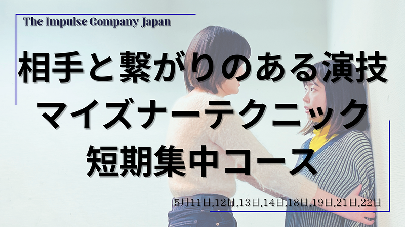 8日間のワークショップで、マイズナーテクニックのトレーニングに集中的に取り組み、最終的に台本を使ったシーンワークをします。