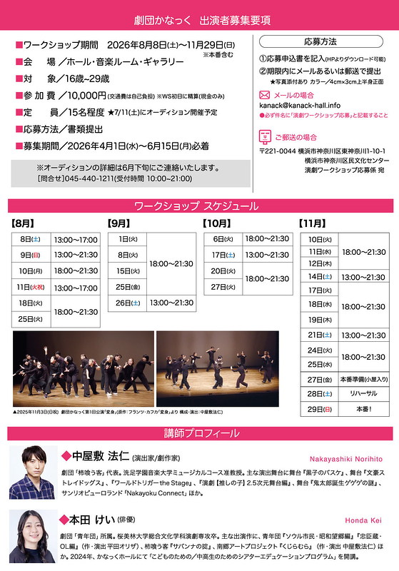 【ワークショップ期間】2026年8月8日(土)~11月29日(日) ★本番含