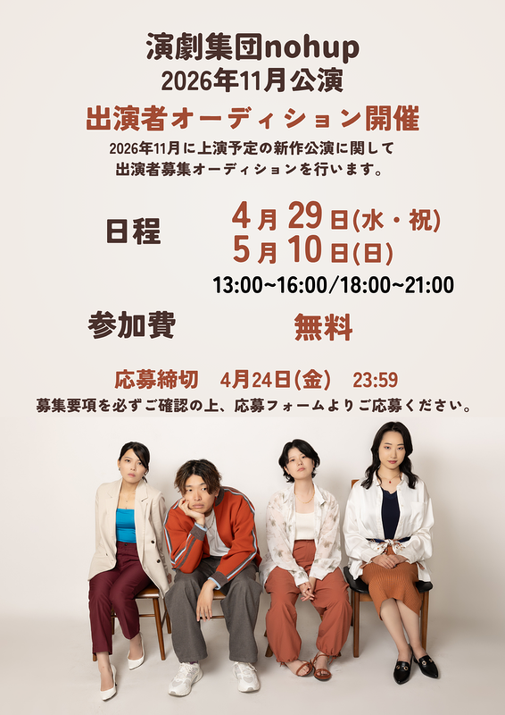 この度、2026年11月にインディペンデントシアターOjiで行われる次回公演に向けた出演者を募集するため、オーディションを開催いたします。