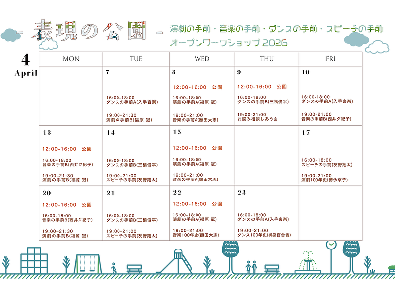 【超初心者向けWS|表現の公園-演劇の手前・音楽の手前・ダンスの手前・スピーチの手前】