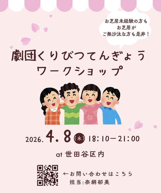 劇団くりびつてんぎょうでは、無料のワークショップを開催中です!