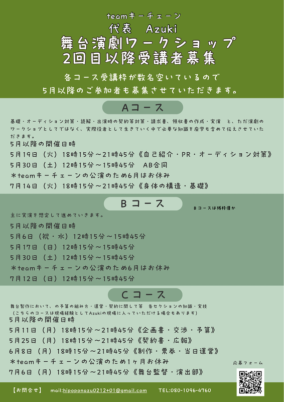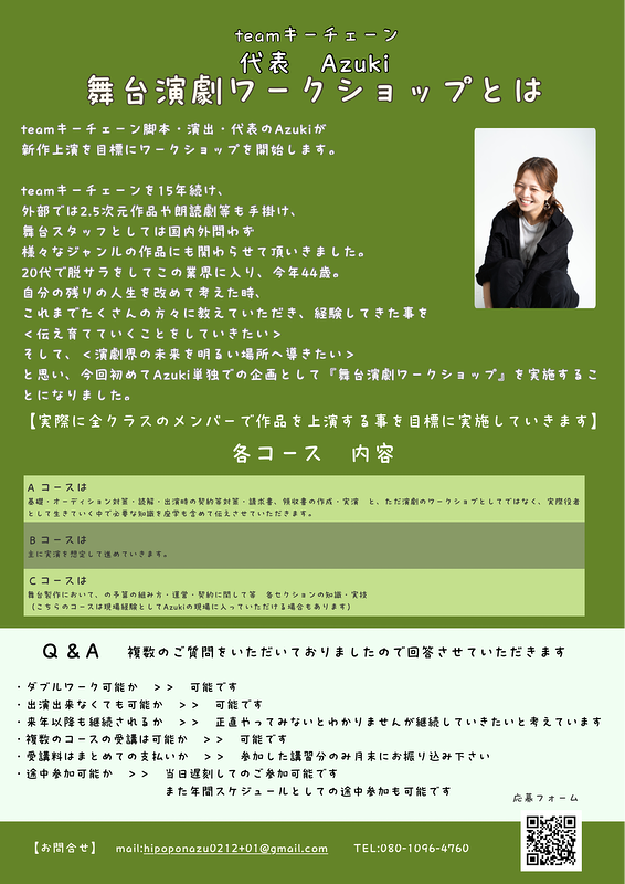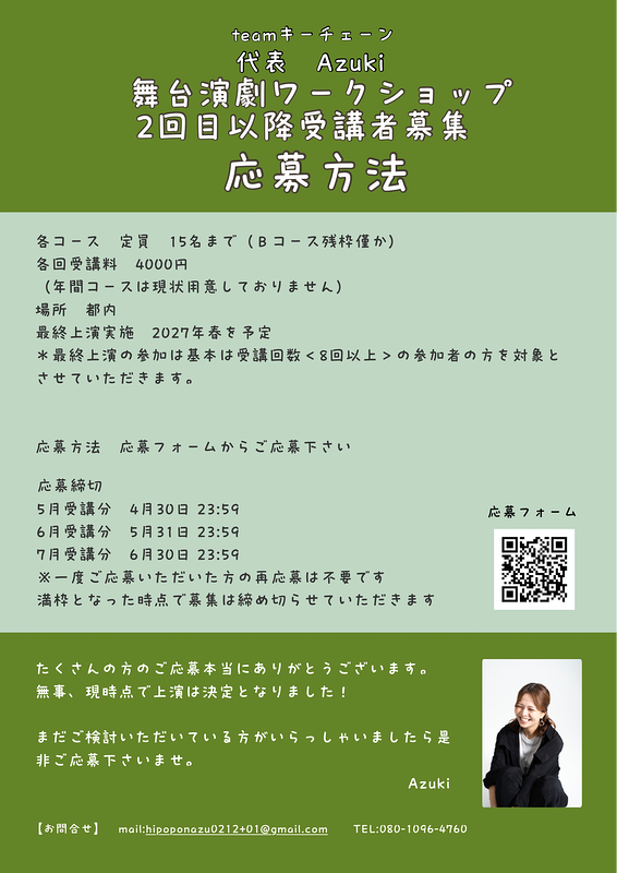 と思い、今回初めてAzuki単独での企画として『舞台演劇ワークショップ』を実施することになりました。