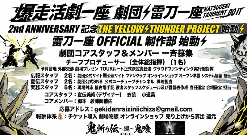 【全方位募集】劇団雷刀一座PRESENCE 2nd Anniversary Project 最強の精鋭募集!