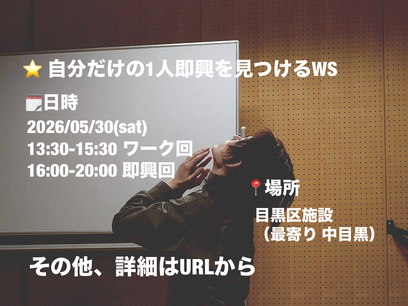 1人即興をするために役立つと僕が思っている実践的なワークをとにかくやっていきます。