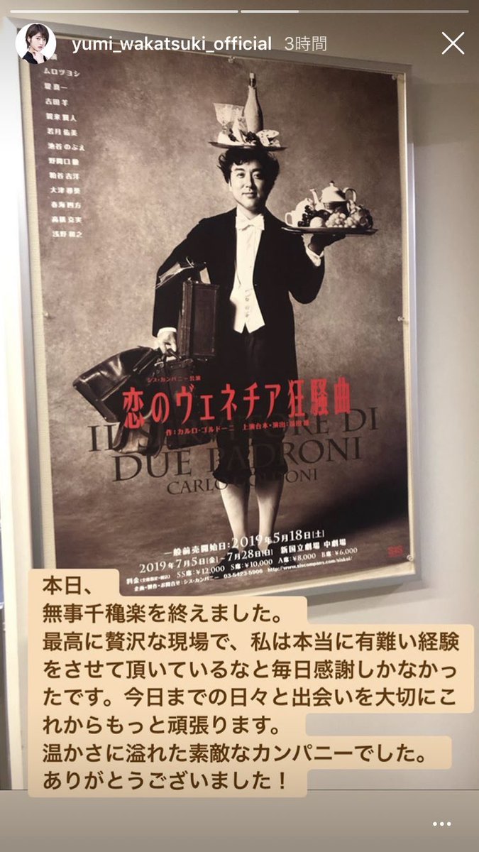 最高のカンパニーで、最高の舞台だった! 卒業後の初舞台が福田監督作品で、恋のヴェネチア狂騒曲で良かった☺️女優さんとして、大きく素敵な一歩を踏み出せたね😆本当にお疲れ様でした! これからも頑張ってください!! https://t.co/Dbi1nCxExp #wakagram