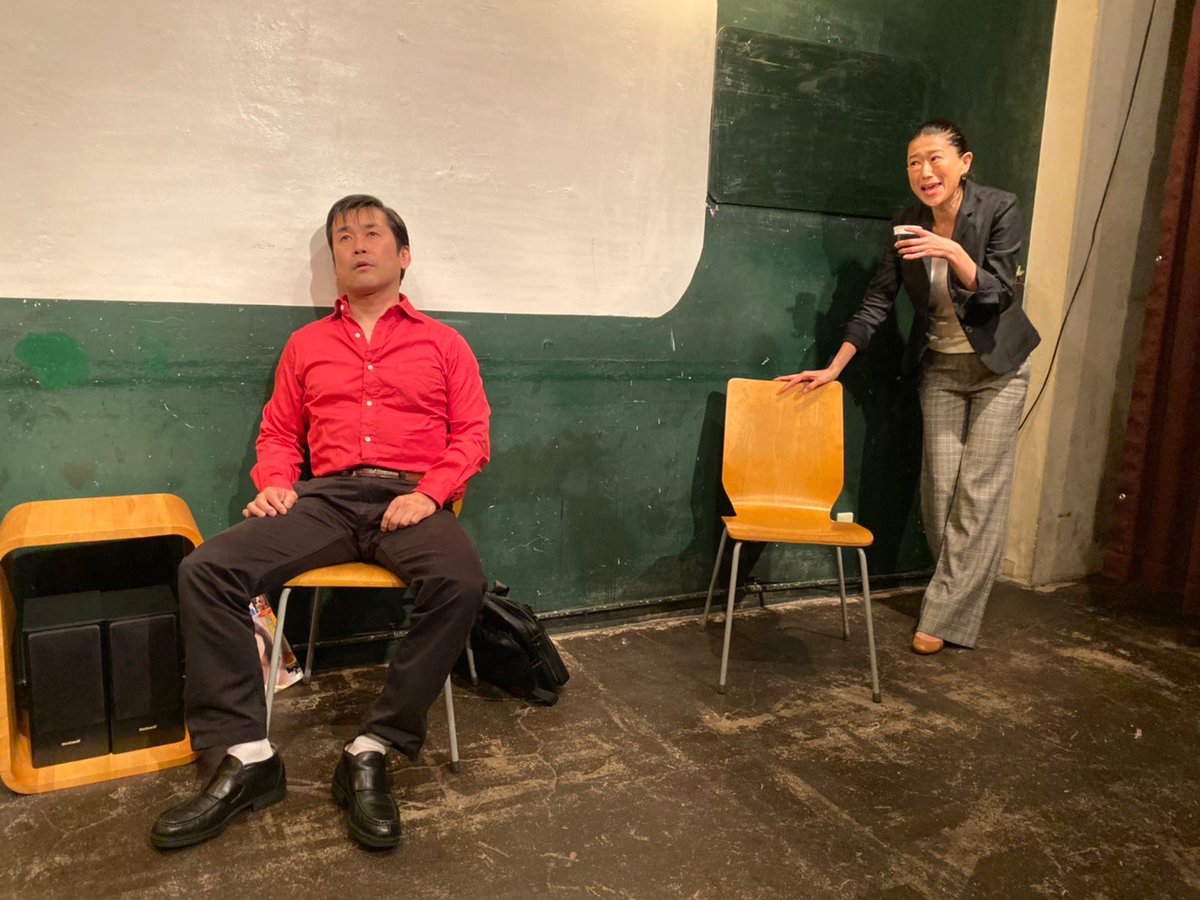 『墓場のオサムと機嫌のいい幽霊』演者さん ④ 田中さんは憎悪…いや、嫌悪かな、とにかく愛情はほぼ感じない。憤怒のまま首を絞める。…さて。どっちが残酷?田中さんは久々の小劇場。またいろいろ出て欲しいところ。スラステとか。その娘、つまりオサムの妹は阪田愛子さん、松田ミヤさん。