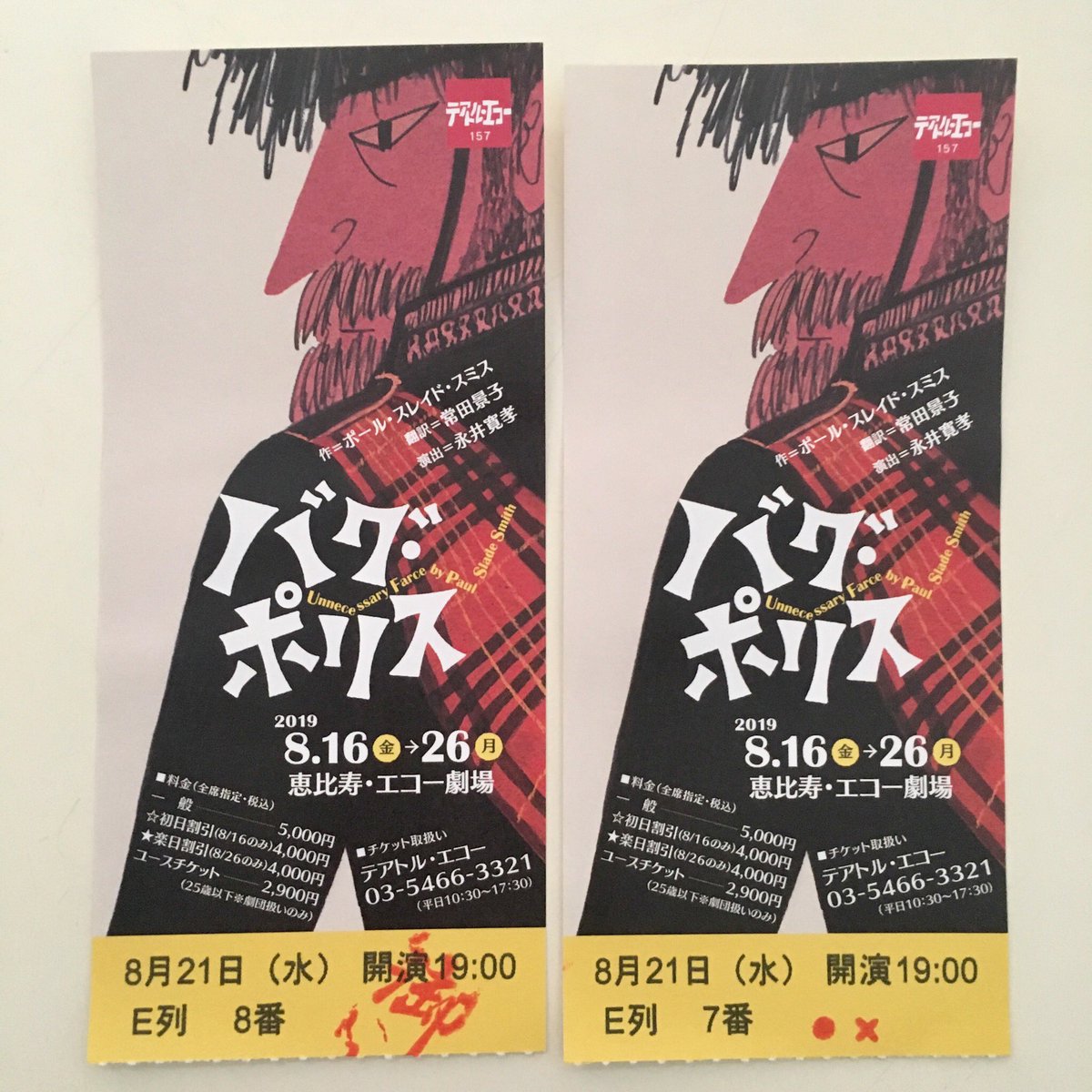 8月25日(日)14時開演 「バグ・ポリス」 受付開始13:00 開場13:30 終演15:40 ◆開演1時間前より、当日券を販売します◆ ユースチケット(25歳以下)ご用意あります。 明日の千秋楽26日(月)は完売の為、… https://t.co/yQjGEYZJ7z
