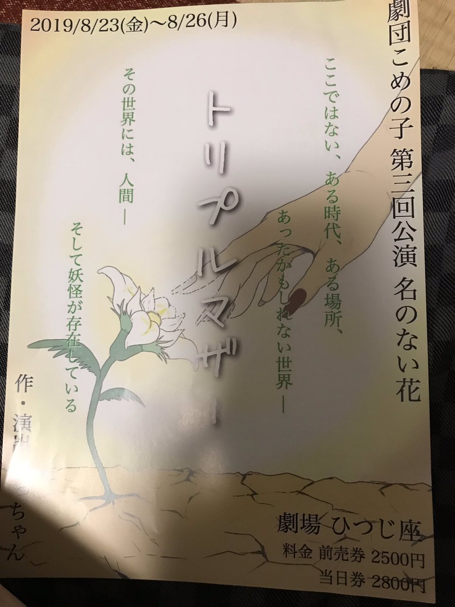 23. 今宵は 友人の姪っ子さんが出演している舞台 劇団こめの子第3回公演 名のない花 「トリプルマザー」を観劇して 来ました。 まだ、公演中につき ネタバレ防止の為 写真、感想などは後日します。 #荒井友恵 #トリプルマザー https://t.co/29QLbAHLSp #荒井友恵 #トリプルマザー #こめの子