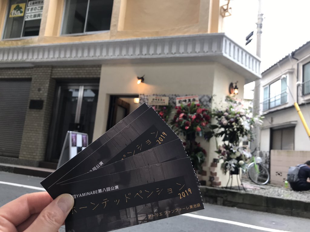 今日はこちら。 劇団YAMINABE第8回公演『ホーンテッドペンション2019』アトリエファンファーレ東池袋にて。 …かなり早めにくるほうなんだけど、開場1時間前からすでに5、6人並んでる(O_O) なので並ぶ場所を聞いたら、演… https://t.co/aabMCnz84f