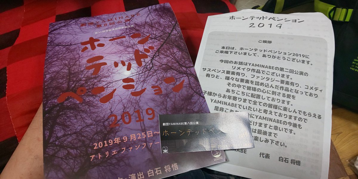 【20190928】劇団YAMINABEさんの舞台「ホーンテッドペンション2019」を観てきた。時間作って観に行って良かった凄くいい時間を過ごした! 最後の展開は意外すぎたけど、人の温かさ、すれ違って交錯する感じが何とも言えずもど… https://t.co/RK4Tf4INtC