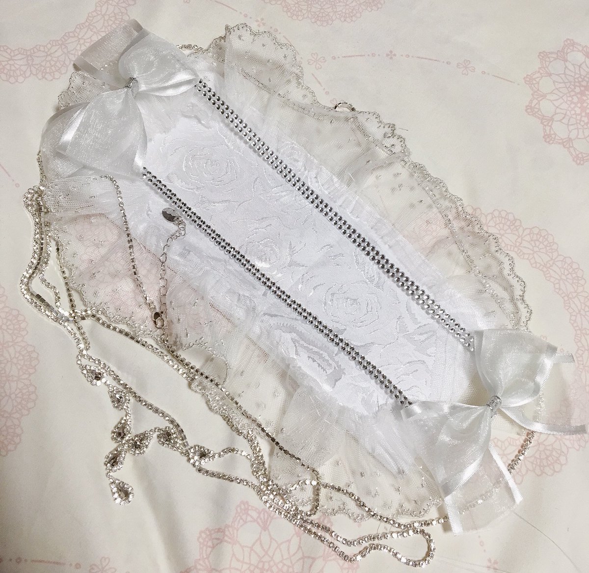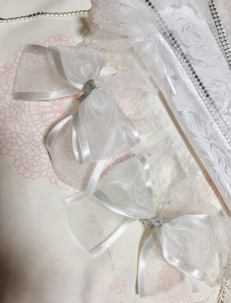 こういうことがしたいんですよ😇✨白と銀を組み合わせたい 白いリボン可愛ええだろ🎀 なんか思ったより簡単に出来そうである(˘ω˘)今日はここまでだな くるみ割り人形のちび軍帽も作りたい🎩 https://t.co/VNeda2abT4