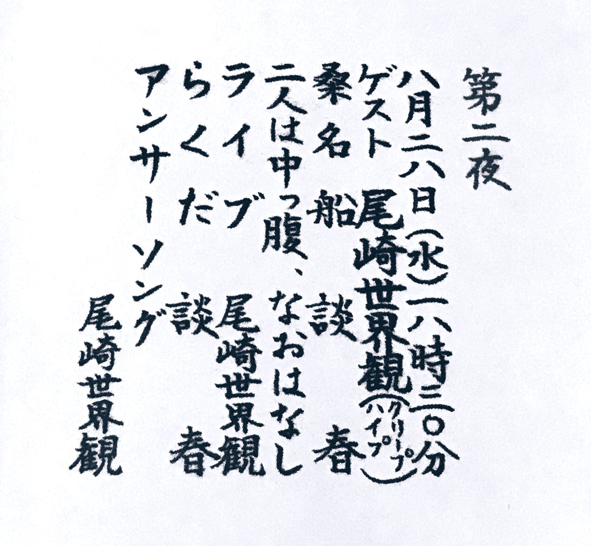 2019年8月28日【水】立川談春35周年記念公演~玉響-tamayura 開演18時半 シアターコクーン 渋谷 番の組/敬称略 立川談春/桑名船 二人は中っ腹、なおはなし 尾崎世界観/ライブ お仲入り 談春/らくだ 尾崎世界観/… https://t.co/kvST0UGp3Z
