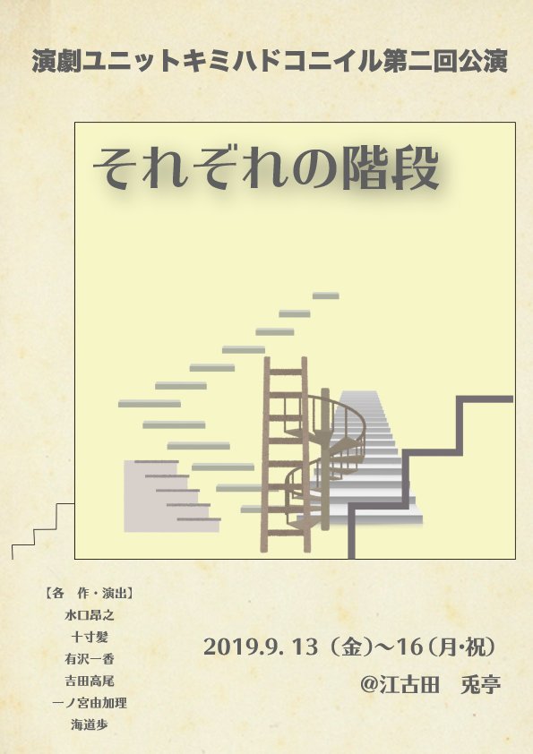 34. 公演情報:キミハドコニイル 第2回公演「それぞれの階段」https://t.co/XGWul69xcC