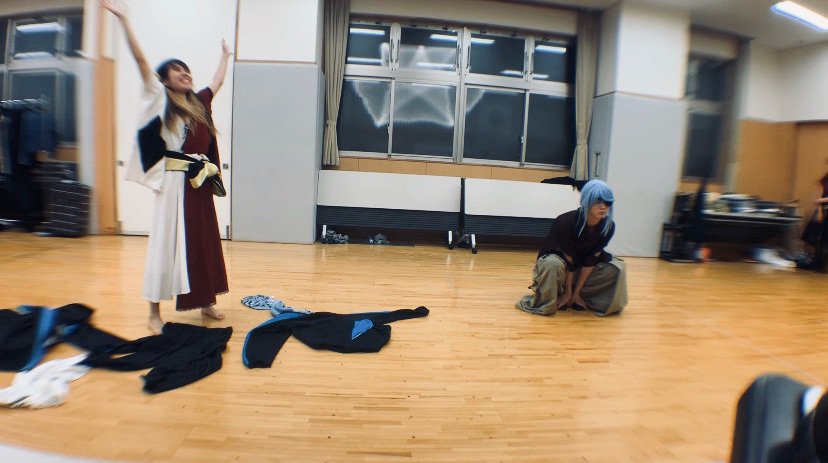 浅草での妖異幻怪物語が終わり、 今日は晴天の劇場入りでした☀ 皆で舞台や諸々仕込んで来たよー😊🙌🏻 衣装も全部整理して、他にお仕事は~・・・ あら? 何だか見覚えのある3人組じゃない?😝 (今回は一切絡まない 笑) https://t.co/YL1RtDOkfK #結人