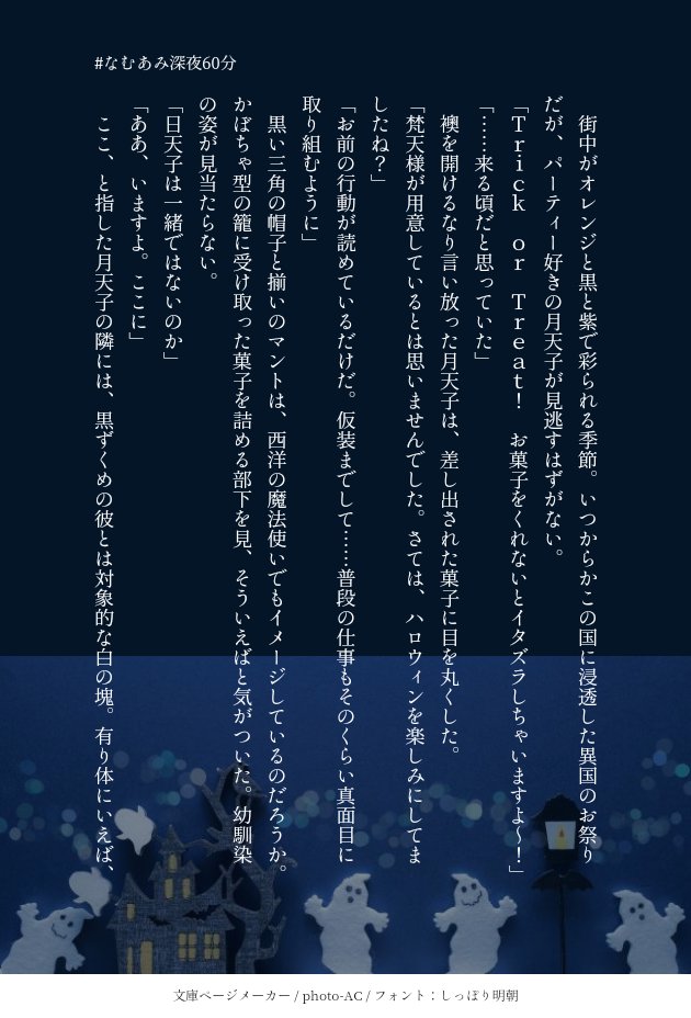 35. にだいごほーぜんしん師弟でハロウィン👻 https://t.co/p5q7CLoe84 #なむあみ版深夜の創作60分一本勝負