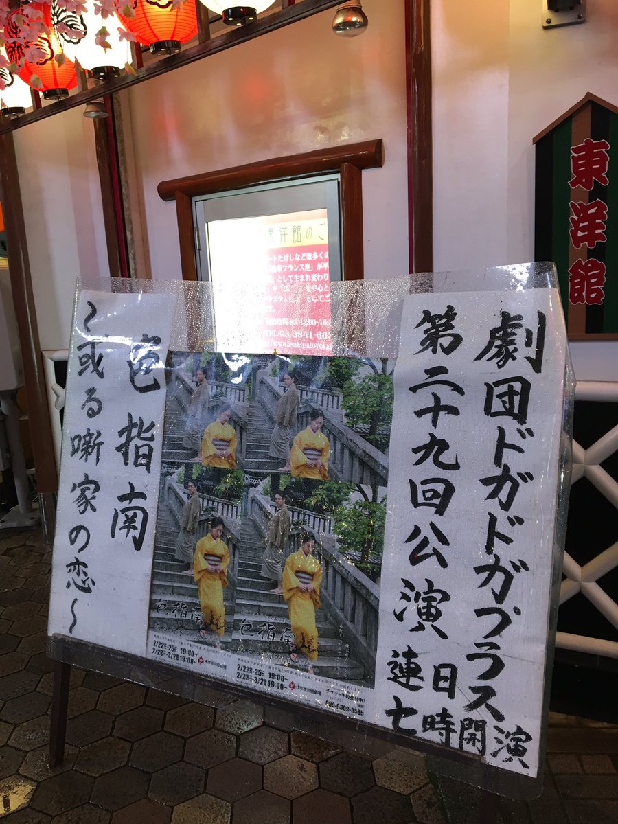 劇団ドガドガプラス「色指南」本日千穐楽でございます。 浅草東洋館劇場で19時開演。 頑張って下さい。m(__)m