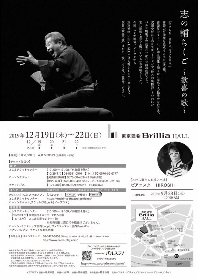 24. 志の輔らくご~歓喜の歌~@東京建物 Brillia HALL 立川志の輔:ディア ファミリー HIROSHI:ピアノ 立川志の輔:歓喜の歌 https://t.co/UjZtRB0BFQ