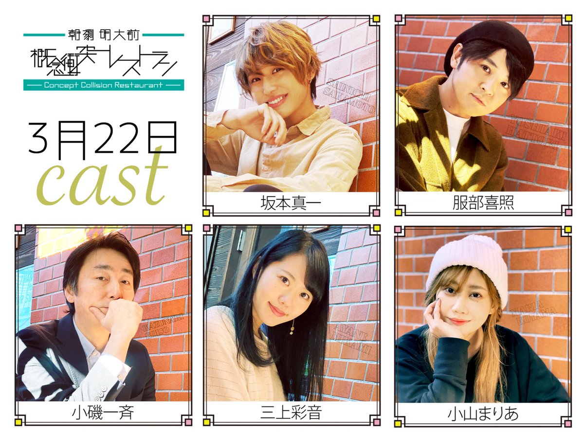⑥まこちゃん告知タイム オフィス上の空プロデュース 朝劇赤坂『笑う、夜の果てにて』@赤坂Corusに出演中。 土日公演でまこちゃん🐹は日曜日に出演予定。3月は22、29日です。 2/22(土)「Birth of SHOWTIME~… https://t.co/uxqnJoUb8S