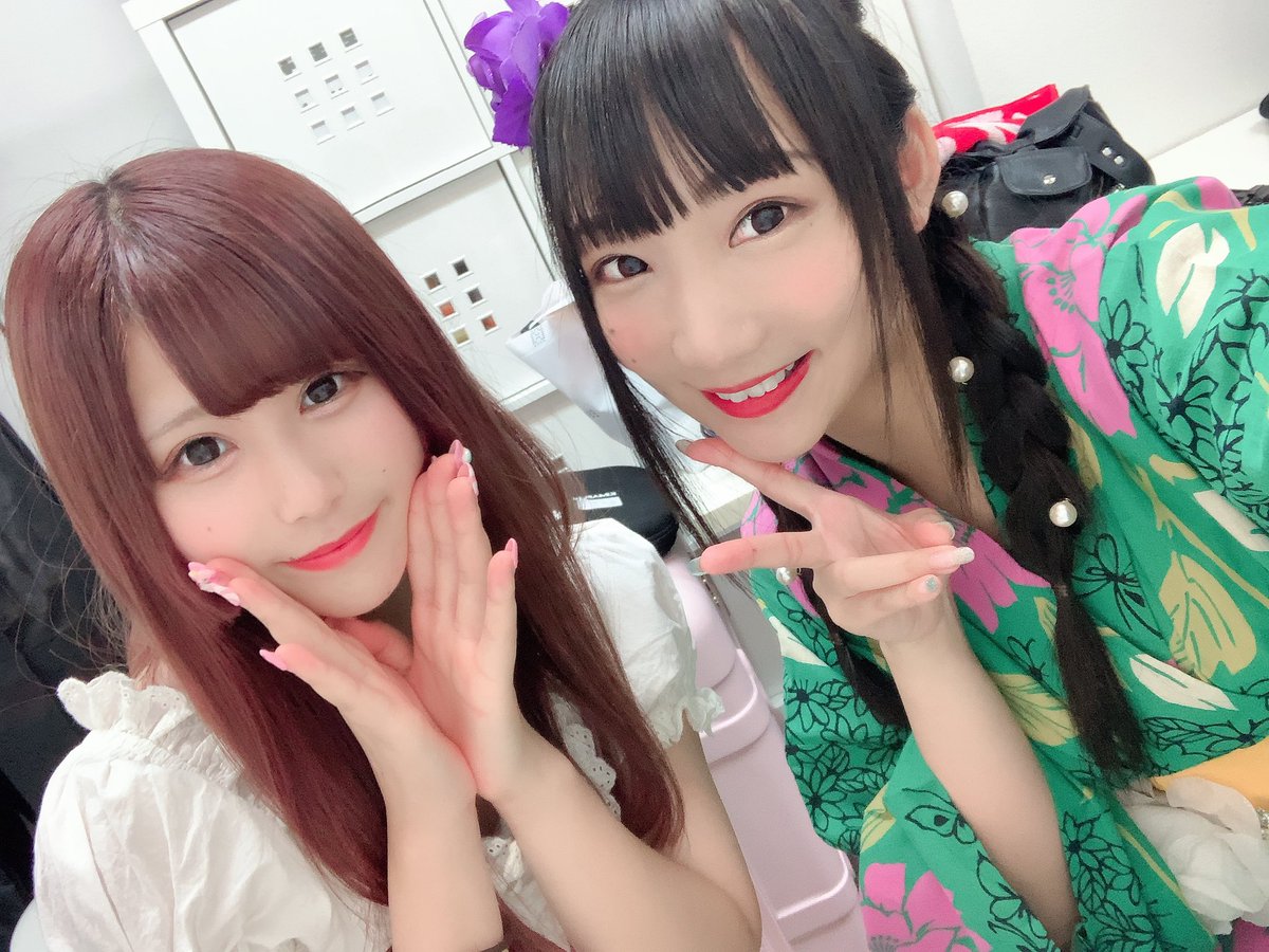 楽屋でお写真撮っていただきました~( ´͈ ᵕ `͈ )💓 しーちゃんとは唐揚げ食べながら撮ったよ٩(๑> ₃ <)۶🍖笑 みんなそれぞれの夏衣装が見れて嬉しかったです😍🌺🌴 ありがとうございました🥰💗 https://t.co/lOsyBEVQDs